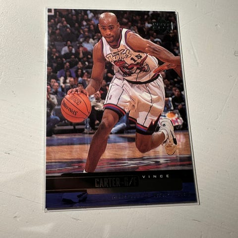 Vince Carter basketballkort! Selges som vist på bilder. Strøkent basketkort! Insert fra Upper Deck!
