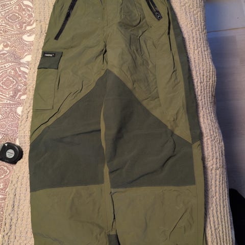 Fin turbukse. Uten fôr. Mulighet for justering med strikk i livet. Lommer framme og en baklomme med glidelås.