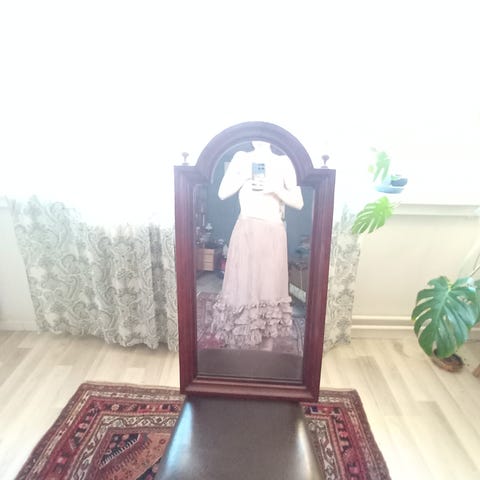 H&M skjørt i størrelse M, laget av polyester. Skjørtet har en beige farge og et teksturert mønster. Egnet for kvinner.