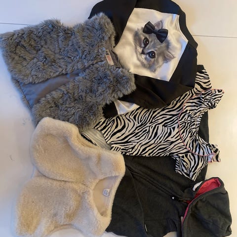 Noe av de er nesten ikke brukt (hvite bukser og rosa genser fr name it) mens noe er mer brukt (genser fra devold og reflex, se bilder. Den hvite genseren er slitt foran. Den røde/rose fra devold har blitt sydd på armen, og har et hull bak som må sys og noen missfargning på armene.