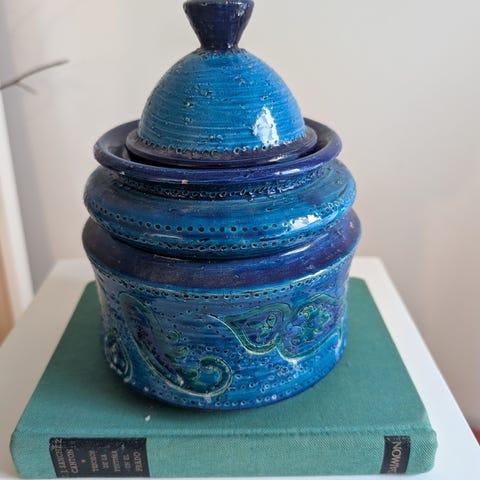 Turkis skål i marmor som kan brukes med eller uten lokk. Kjøpt i Kairo - kjøpte to.