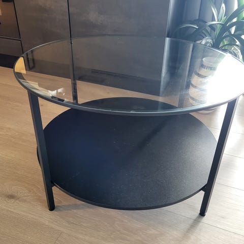 Diameter 75 . Rundt bord med glassplate