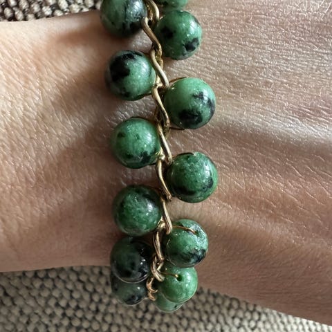 Smykket er i topp stand. Kombinasjonen av de jordnære steinene og de glitrende sorte og klare krystallene gjør at det passer like godt til hverdags som til fest.