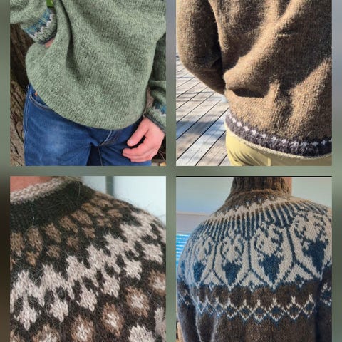 Har flere gensere i andre farger, mønster og str.