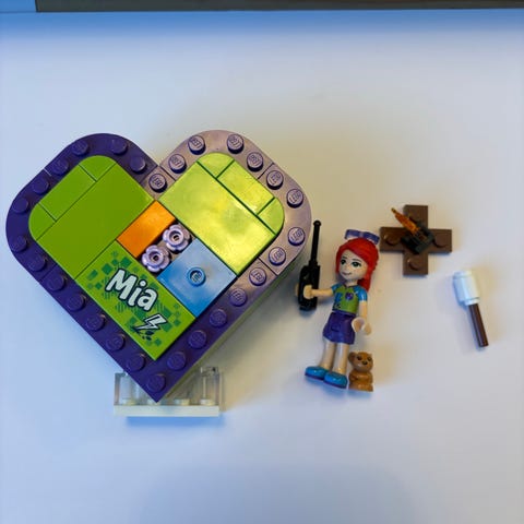 LEGO Friends hjerteformet oppbevaringsboks med mye moro lego friends tilbehør. Lego friends heart box friendship pack. Fin til å bygge og til å leke med. Jeg har telt over delene. Det er noen små mangler, men har lagt ved erstatningsdeler. Leveres demontert i en praktisk plastboks og instruksjonshefte 😊