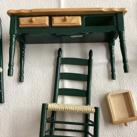 miniatyrmøbler i tre. Str 1:12 Ubrukt. Har ligget nedpakket siden kjøp.