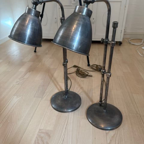 Selger tre dekorative industrielle lamper i metall med flott, autentisk patina. Lampene har et rått og tidløst uttrykk som passer perfekt til moderne, minimalistisk, industrielt eller nordisk interiør.