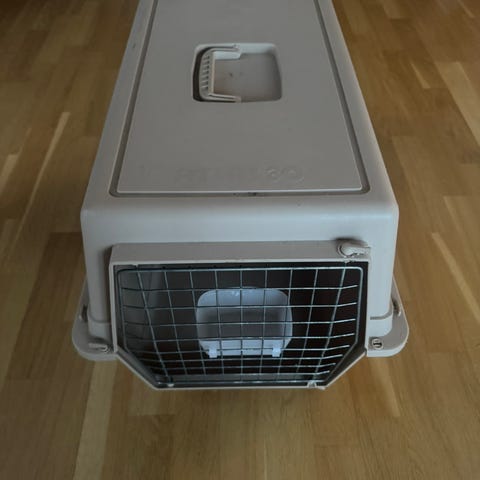 Reisebur for kjæledyr laget i plast med metallgitterdør. Burens design inkluderer ventilasjonsåpninger på sidene for luftgjennomstrømning. Egnet for transport av små til mellomstore kjæledyr. Brukt som hundebur under flytransport.