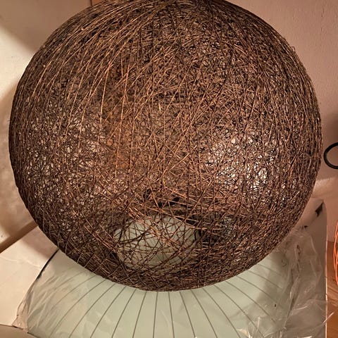 Sort taklampe i «nøste-design», ca 55 cm diameter.