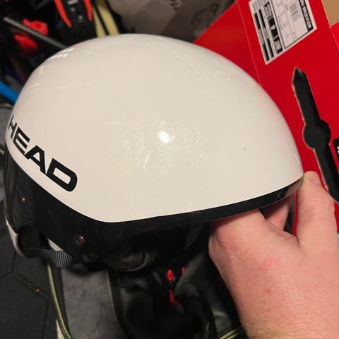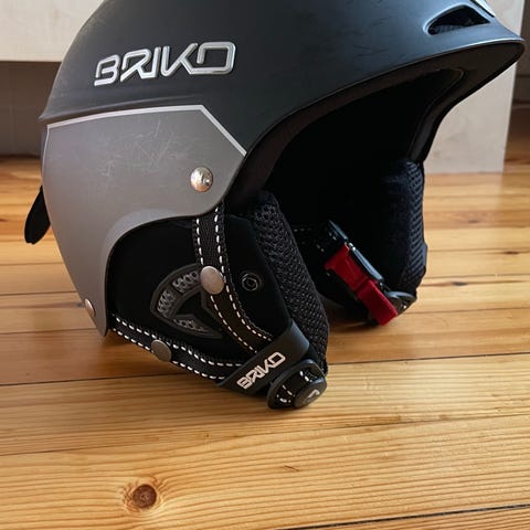 Uvex hjelm i svart og sølv farge. Pent brukt til skihopp to sesonger, ikke falt i bakken. Ingen bulker eller skraper. Str 55-8 cm.