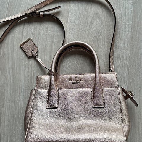 Vesken er i god stand og godt brukt uten synlig slitasje. Skinnet er vedlikeholdt. Glidelåsene hele. Flappen med trykk knapp har delt seg og kan sikkert limes . Har ingenting å si for å lukke den.