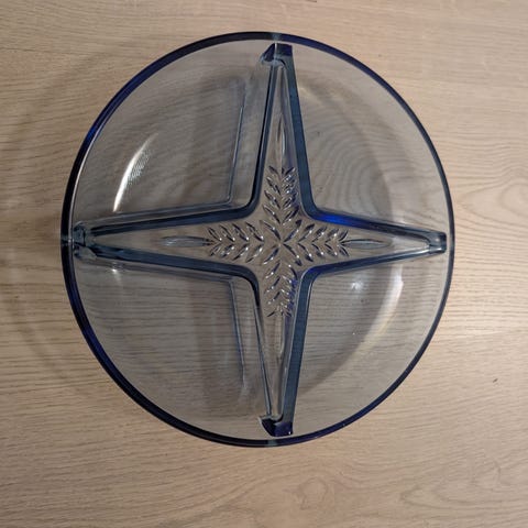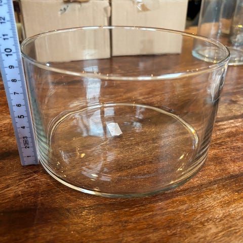 Flat tung glasskål.