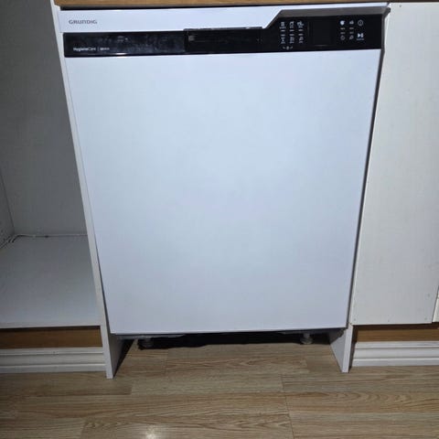 Den fungerer, men hyllene har begynt å ruste. Det har ført til litt rust på det jeg har vasket. Så den trenger nye hyller. Ikke kjørt rens på en stund.