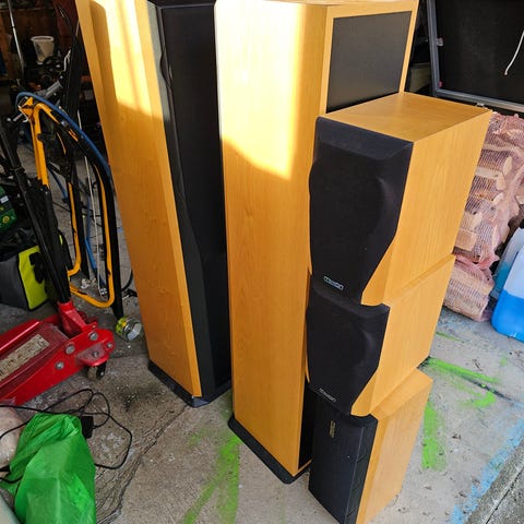 Det følger med diverse høyttalerkabel.