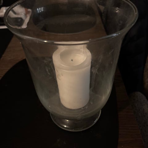 Fasettslipt lyslykt i "fattigmannssølv" og glass. Høyde 30 cm og diameter 17 cm. Gir et veldig stemningsfullt lys når det er mørkt, med dekorativt mønster pga. det slipte mønsteret i glasset. Kan sendes mot frakt.