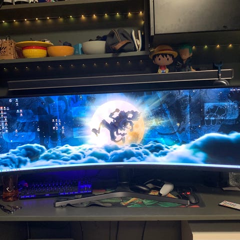 Samsung QLED Gaming Monitor med en skjermstørrelse på 49 tommer. Skjermen har en oppløsning på 5120 x 1440 piksler og en oppdateringsfrekvens på 120 Hz. Den har en responstid på 4 ms og støtter HDR. Skjermen benytter QLED-teknologi og har et fargeområde på 125 % sRGB. Monitoren har en lysstyrke på 600 cd/m² og en kontrastforhold på 4000:1. Den har flere tilkoblingsmuligheter og er egnet for gaming og generell bruk.