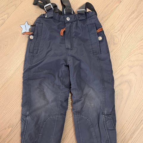 Mini a ture vinterbukse, str 104, blå.varm og god med seler. Har komt noen små hull nederst, litt slitt bak. Men mye bruk igjen.