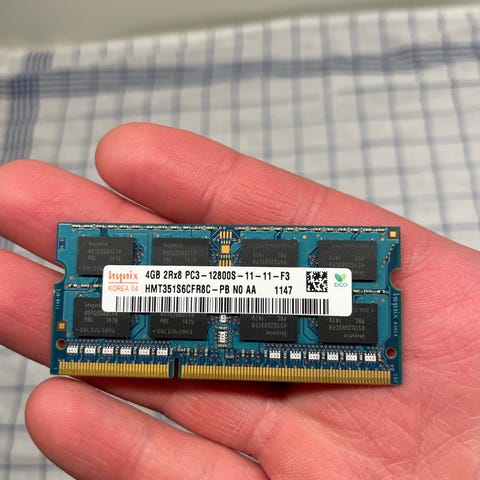 Ramaxel RAM 4GB DDR3 PC3L 1600MHz minnemodul. Passer for kompatible datamaskiner som støtter DDR3-minne med lav spenning (PC3L) og hastighet på 1600MHz.