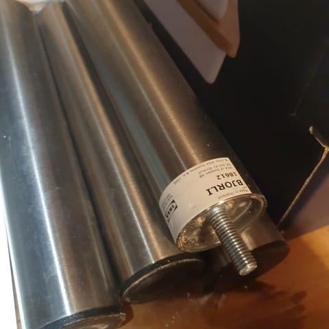 IKEA metallben til møbler med en høyde på 10-15 cm. Benene er laget av metall og har en sylinderform. De er egnet for bruk på ulike møbler for å gi støtte og stabilitet.