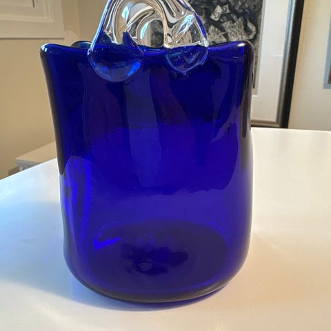 Vakker og humoristisk vase. Vakre farger og fin fasong. Den er hel og fremstår som ubrukt.