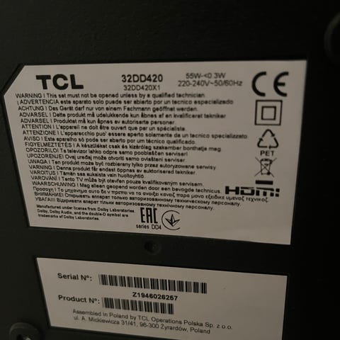 Panasonic TX-L32C2EA LCD-TV med 32 tommers skjerm. TV-en har flere tilkoblingsmuligheter inkludert HDMI, komponentvideo og SCART. Strømforbruk på 90 W. Designet for bruk i hjemmet som en standard TV-løsning. Alt funker som det skal.