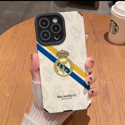 Apple telefondeksler med grafisk mønster i svart og hvitt. Dekselet beskytter telefonen og har utskjæringer for kamera og knapper.