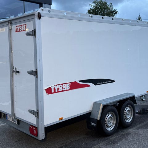Meget godt utstyrt Tysse 6385 med lem, surreskinner, lys, dør i skapet, støttebein og utstyrskasse.