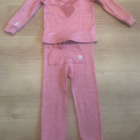 Noen svake skyggeflekker på rosa bukse med strikk, og noe hull/bruksmerker på rosa bukse uten strikk. Se bilde.