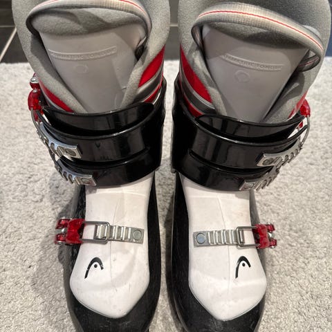 Head skistøvler i størrelse 25-25,5 cm med fargene svart, hvit og gul. Lengde 297mm