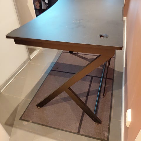 Kontorpult skrivebord med buet design i trefarge. Passer for bruk i hjemmekontor eller kontormiljø. Gir god arbeidsplass for datamaskin og skrivearbeid.