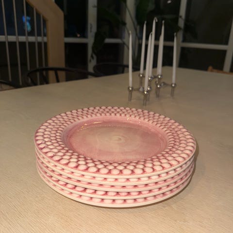 Mateus bubbles suppetallerkner selges. Farge cinnamon.