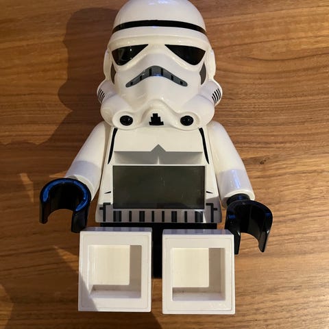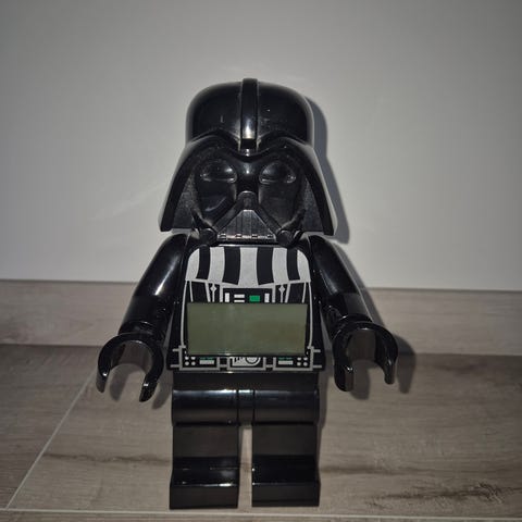 LEGO Star Wars vekkerklokke formet som Darth Vader-figur. Laget i plast, med digitalt display og alarmfunksjon. Svart farge.