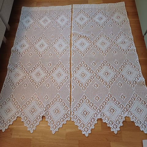 Nydelig stor hvit duk med broderier