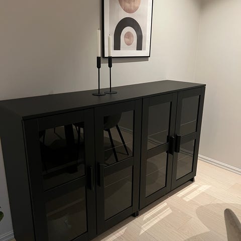 Pent brukt nattbord fra IKEA. Stor plass inne i skuffen og det er praktisk siden det er forholdsvis smalt.