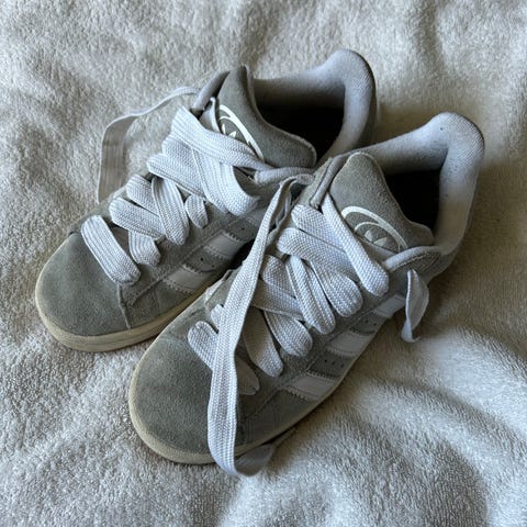 Merke: Adidas. Skoene har merker og lissene er tidvis noe flekkete. Det er svært lite slitasje på sålen.