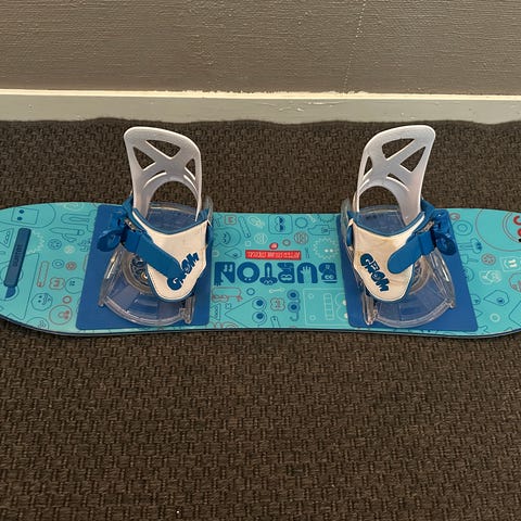 Komplett med bindinger og Burton mini grom støvler i str 26. Man kan ta ut sålen og da blir skoene en str større.