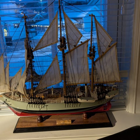 Restauration la ut fra Stavanger juli 1825. Båten var en 54 fot og fraktet 52 emigranter til Amerika. Etter 98 døgn ankom båten New York.