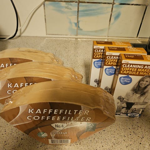 Selges med en nesten ny pose kaffefilter..