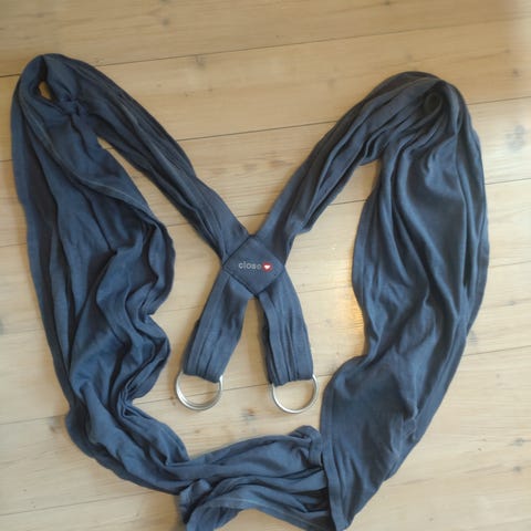 Nydelig vevd blått bæresjal med 40% ull og 60%bomull. Str 6 (470 cm).