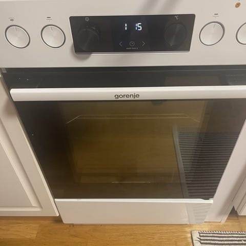 Gorenje keramisk komfyr med keramisk kokeplate og integrert stekeovn. Komfyren har flere kokeplater med ulike størrelser og manuelle brytere for temperaturkontroll. Egnet for matlaging og baking i hjemmet. 3 stekebrett, et dypt og rist. Synlig brukt pga det vises på kokområdet. Fast pris.