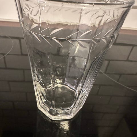 Glass og kopper sett bestående av ulike typer glass og hvite kopper i forskjellige størrelser. Settet inkluderer klare drikkeglass, frosted glass, små snapsglass og hvite keramiske kopper med hank. Materialet er hovedsakelig glass og keramikk, egnet for servering av ulike drikker. Se bilder for antall