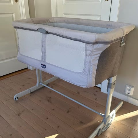 Selger pent brukt bedside crib. Mangler festestroppene som fester denne til seng. Pris kan diskuteres ved rask handel.