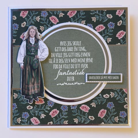 Kort til konfirmanten. Inspirert av blå Nordlandsbunad.