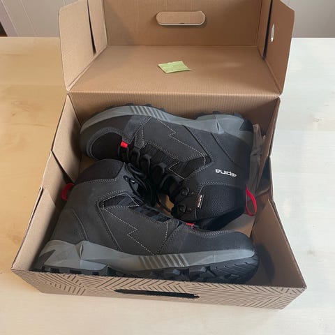 Alpina tursko i størrelse 44, designet for fottur. Skoene har svart farge og er laget med materialer egnet for utendørs bruk.