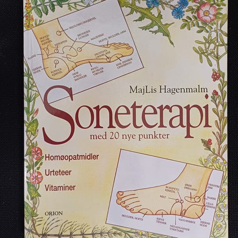 Praktisk innføringsbok i soneterapi og akupressur, med forklaringer og fotografier som viser trykkpunkter på kropp og føtter.