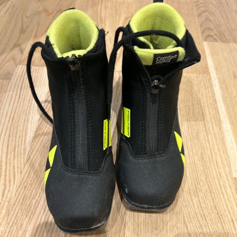 Fischer XJ sprint langrennsstøvler for junior i størrelse 34 svart med neon grønn innside. Støvlene har snøring og glidelås foran for enkel på- og avkledning. Egnet for barn og unge som driver med langrenn.