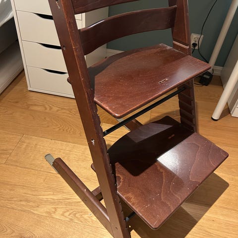 Stokke Tripp Trapp barnestol i svart farge. Justerbar sitte- og fotplate som kan tilpasses barnets vekst. Laget av tremateriale. Designet for barn.