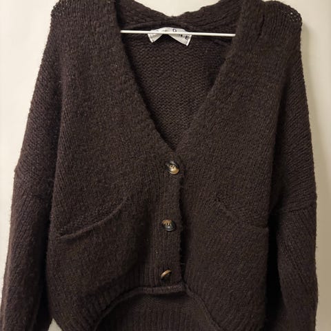 & Other Stories Cardigan i ull, farge beige, størrelse M for dame. Cardiganen har lommer og er laget av en blanding av ull, mohair og polyester, noe som gir varme og komfort.