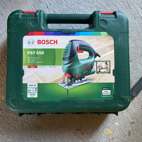 Bosch PST 700 E stikksag med kabeltilkobling. Verktøyet er designet for presisjonskutting i ulike materialer. Leveres i oppbevaringskoffert.