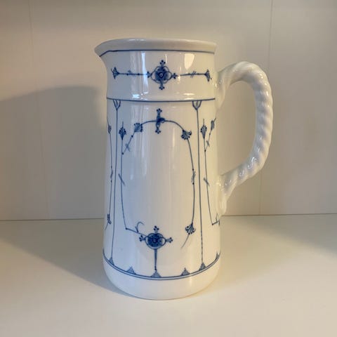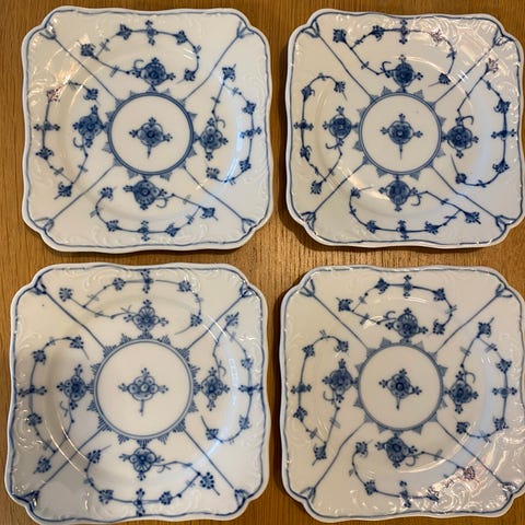 Antikvitet PP Porsgrund gammelt porselen samleobjekt norsk design stråmønster anker vintage porselen kaffeservice sjelden antikk Musselmalt Bogstad strå Porsgrunn porsgrunds porselensfabrikk PP musselmalet RC Royal Copenhagen kongelig vintage blå hvit Blue white fluted riflet grønn retro håndmalt konfekt kake konfektasjett frokost